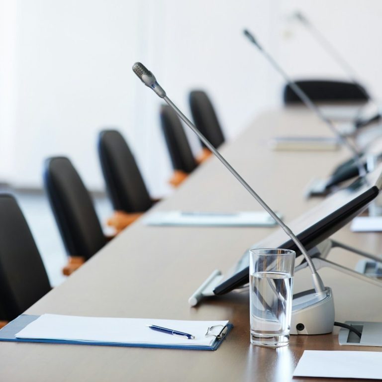 Beratung und Organisation von Konferenztechnik, wie Personenführungsanlagen oder Dolmetschkabinen.